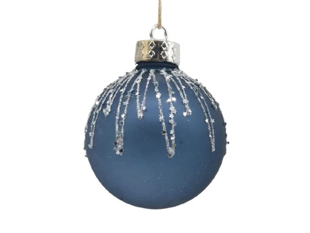 Modrá vánoční baňka s glitry