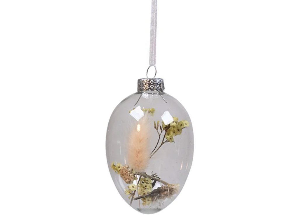 Skleněné vajíčko s květinou - 9,5x6 cm