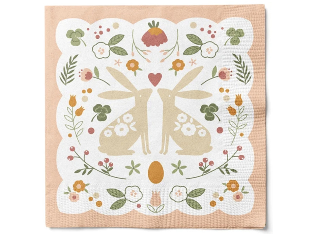 Velikonoční papírové ubrousky se zajíčky a květinami - 20 ks