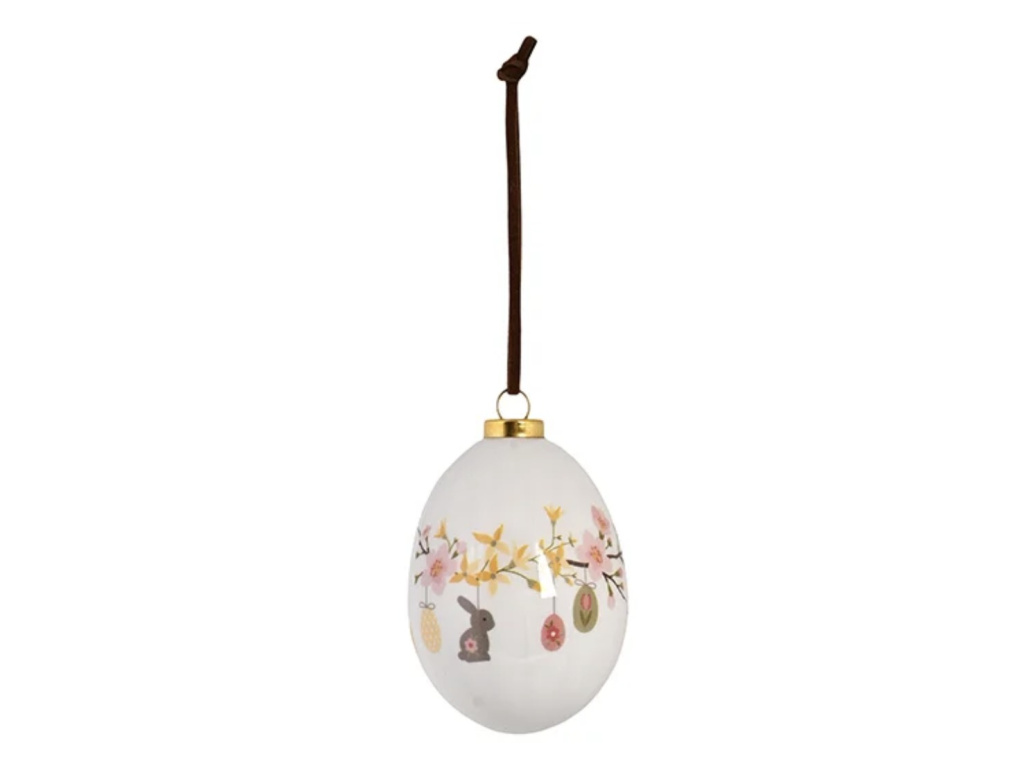 Velikonoční vajíčko na zavěšení s květy - bílé, 6,5x4 cm