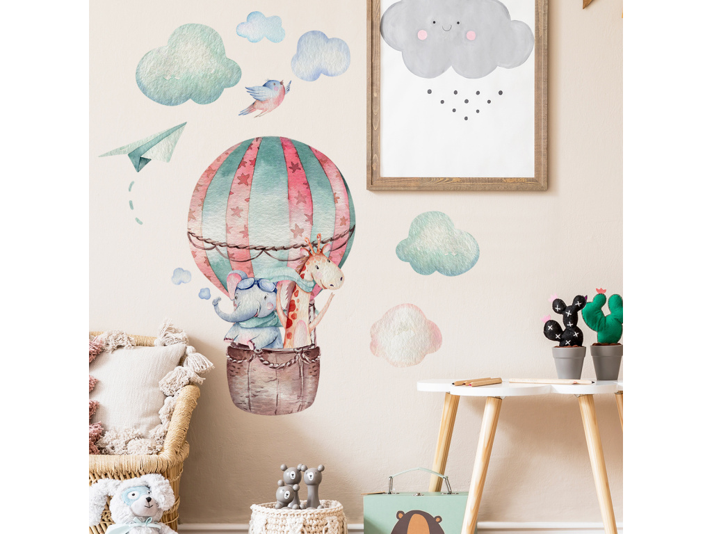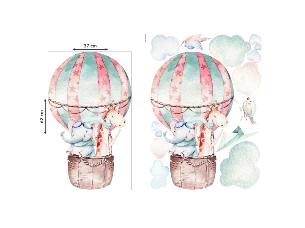Protože rozložení samolepky záleží čistě na vás, tak uvádíme rozměr pro představu: Balón se zvířátky má 62 x 37 cm