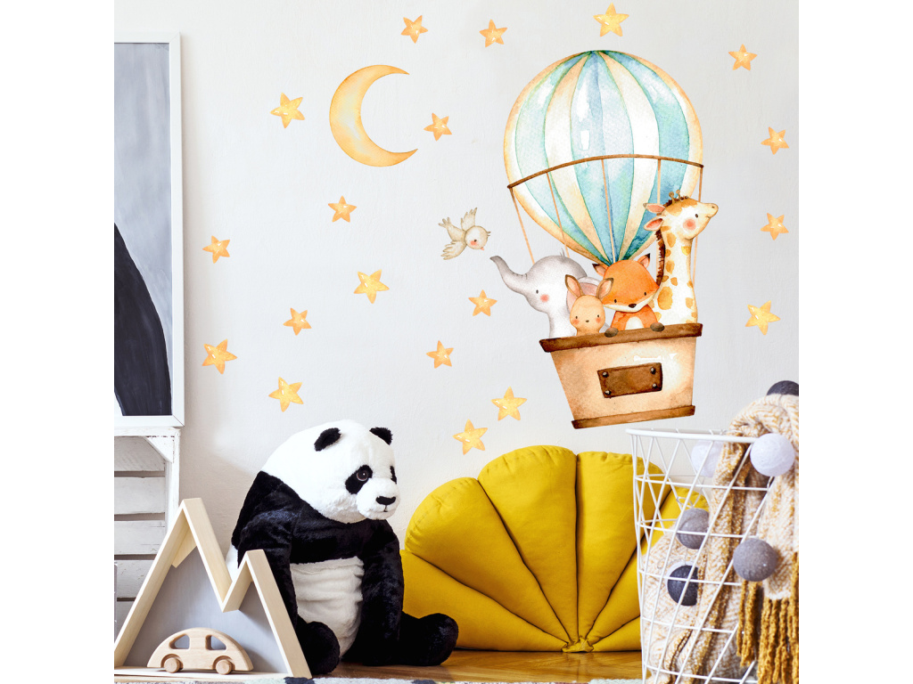 Samolepka na zeď - Balón a zvířátka
