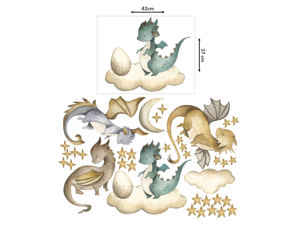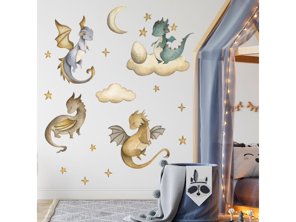 Vypravte se se svými dětmi do říše draků! Krásně zpracovaná samolepka na zeď vysoké kvality se může vyjímat i na vašich stěnách.