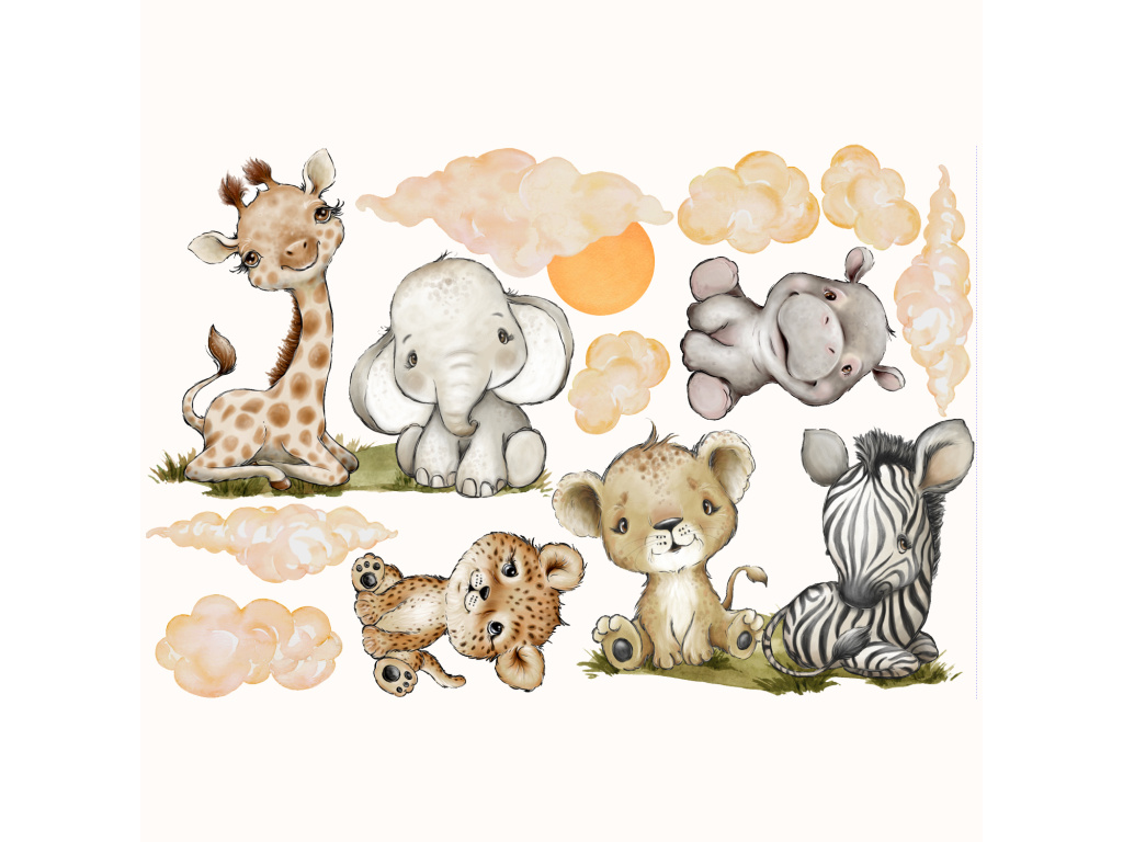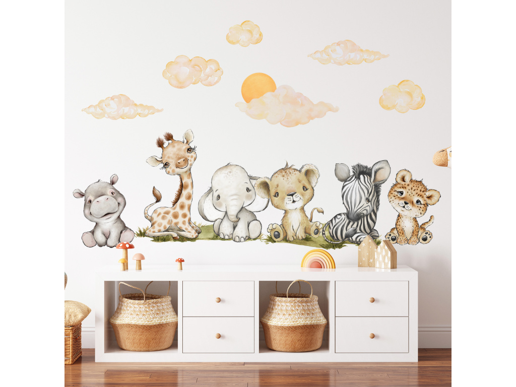 Motiv ručně malovaných zvířátek se hodí do každého dětského pokojíčku! Zpestřete dětský pokojíček s trendy samolepkou na stěnu hned a jednoduše!