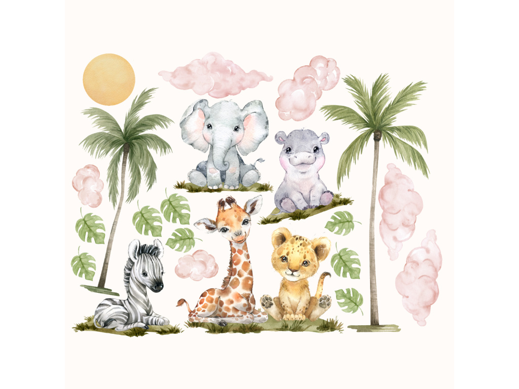 Samolepka na zeď - Safari zvířátka a palmy XXL