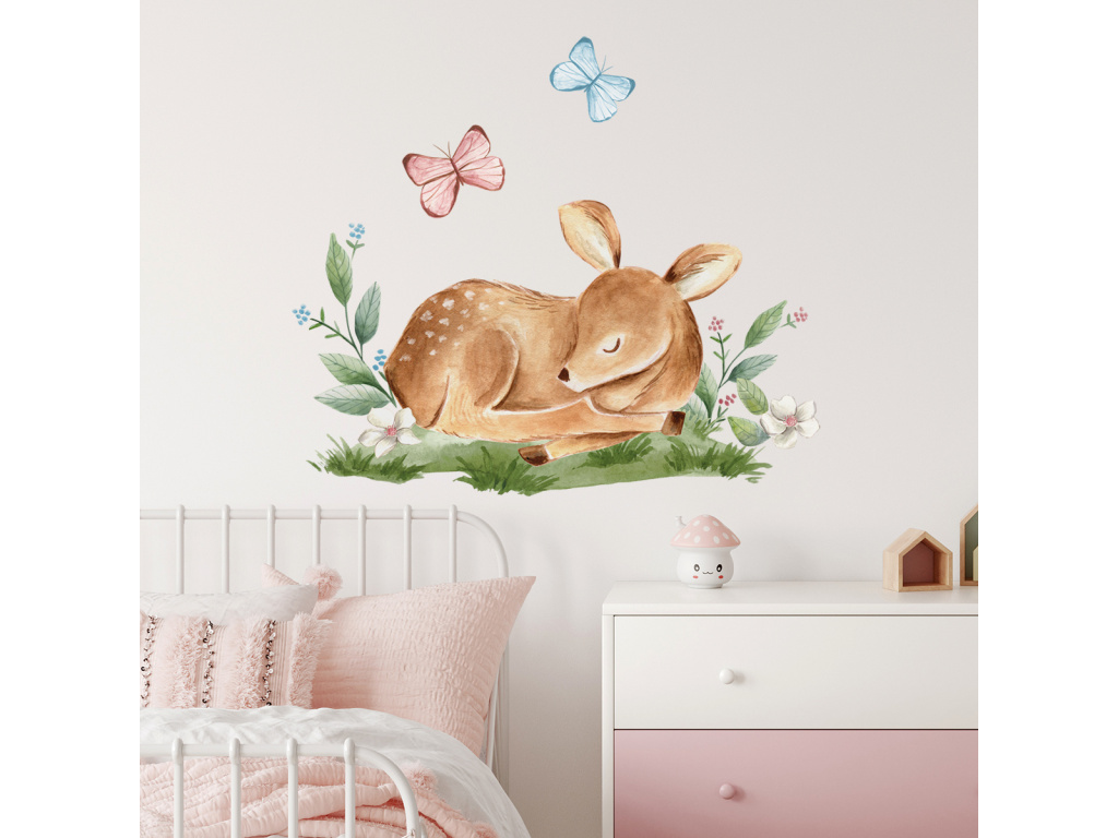 Samolepka na zeď - Srnečka s motýly