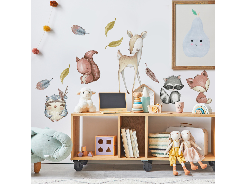 Dětská samolepka s motivy oblíbených lesních zvířátek. Tato moderní dekorace oživí stěny dětských pokojíčků!