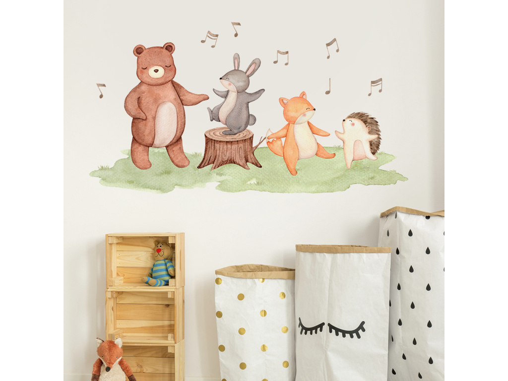 Samolepka na zeď XL - Tanec se zvířátky