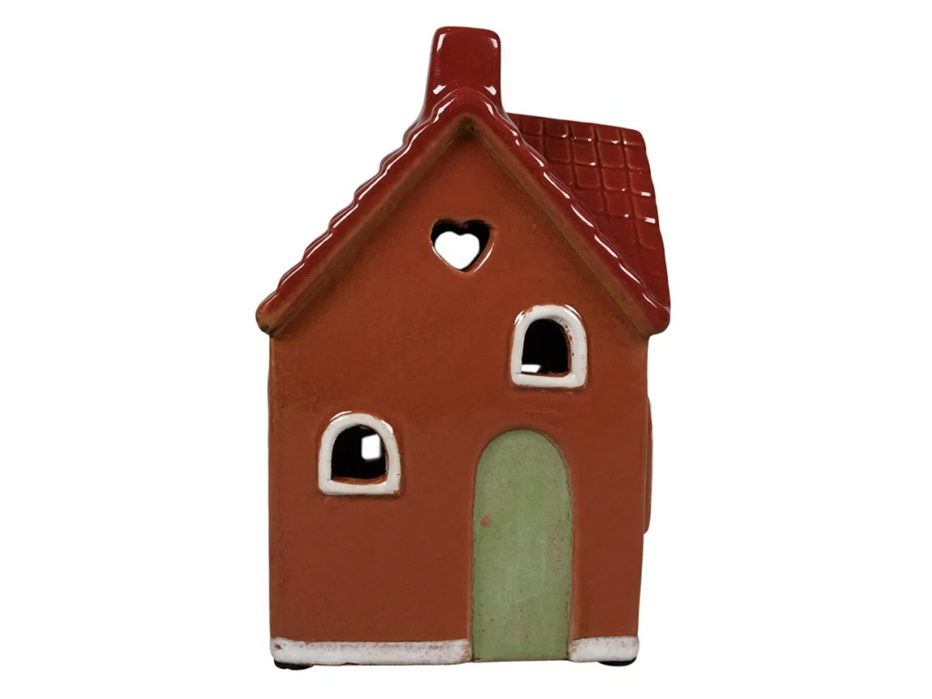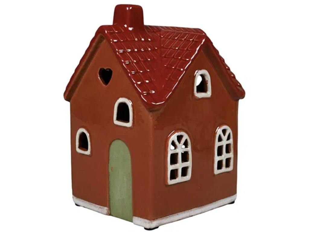 Hnědý keramický domeček na čajovou svíčku - 15x10x9 cm