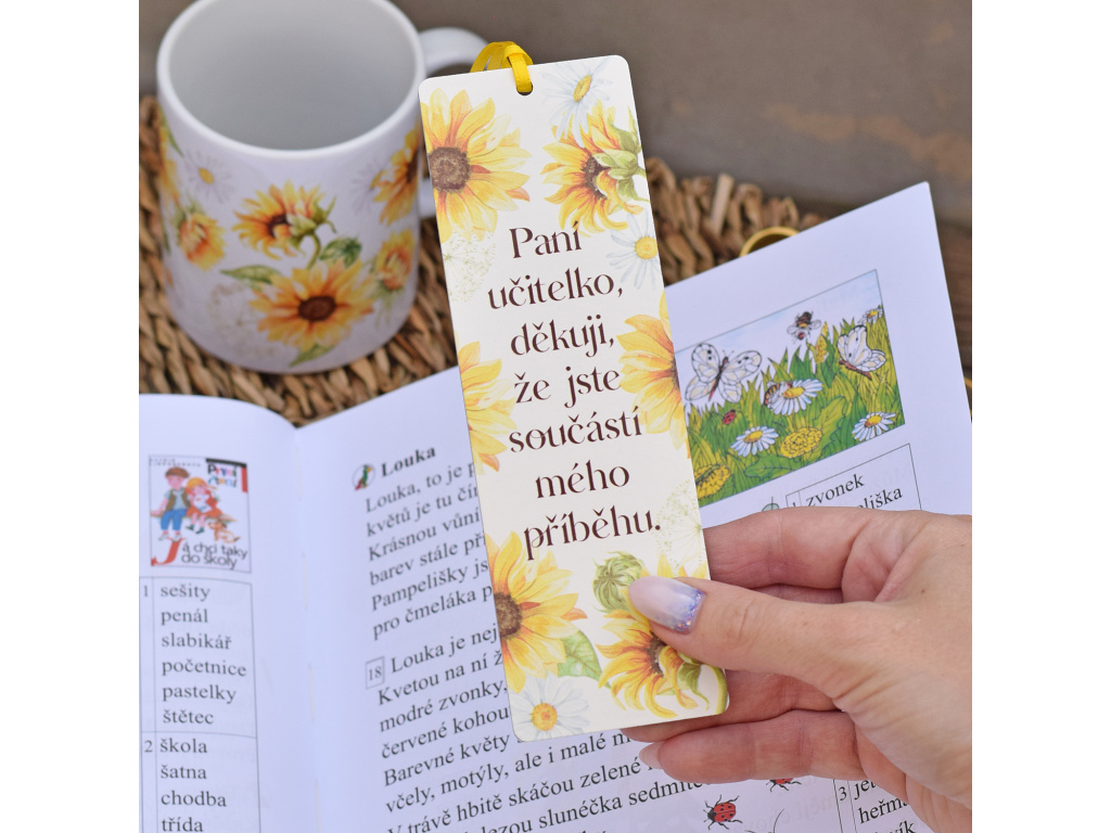 Záložka do knížky - Děkuji, že jste součástí mého příběhu. (slunečnice)