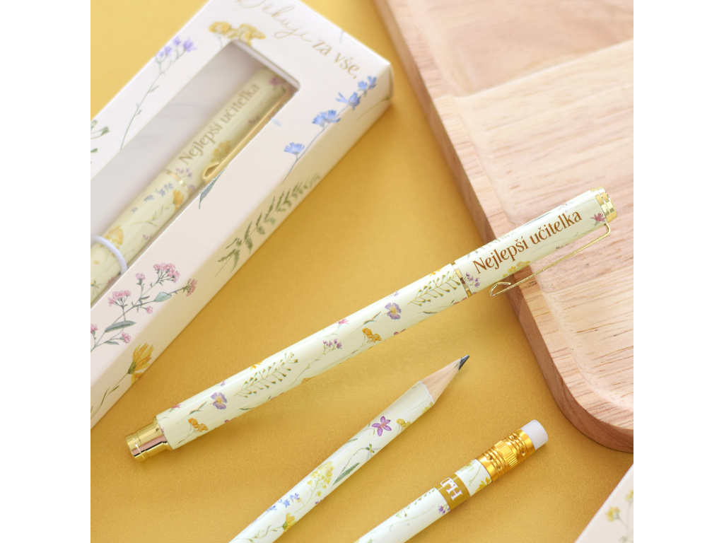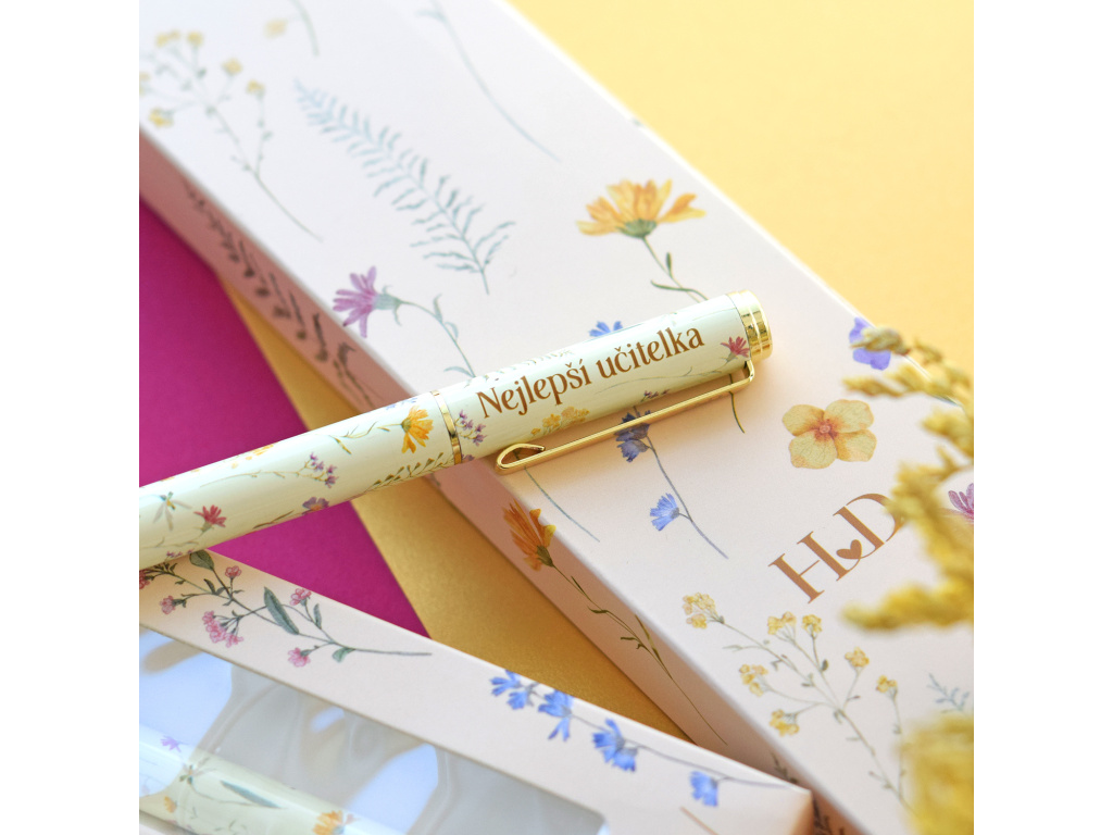 Kovové pero - Nejlepší učitelka (Venkovská zahrada) v dárkovém balení