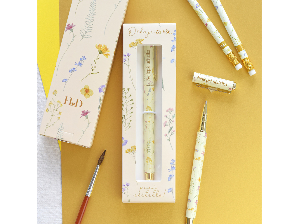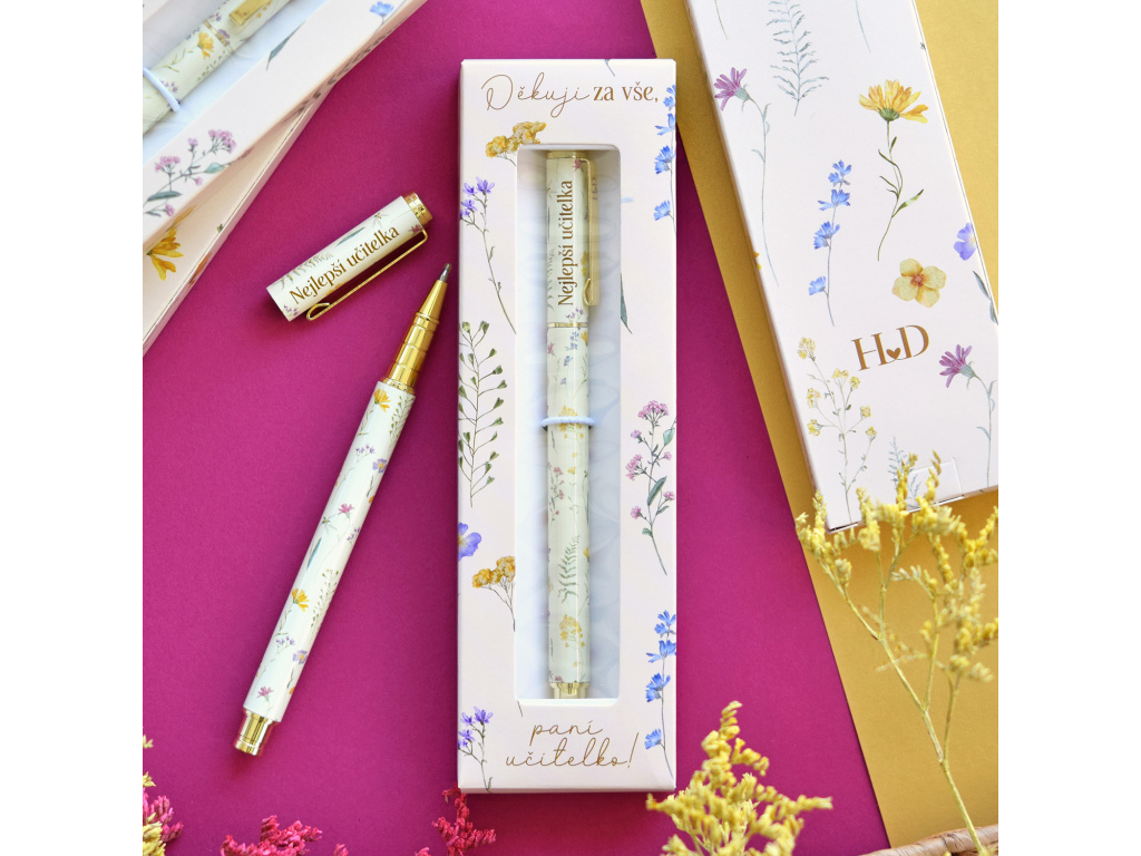 Nádherné kuličkové pero, které je zpracováno v nejvyšší kvalitě s dárkovou krabičkou a českým vzkazem pro paní učitelky.