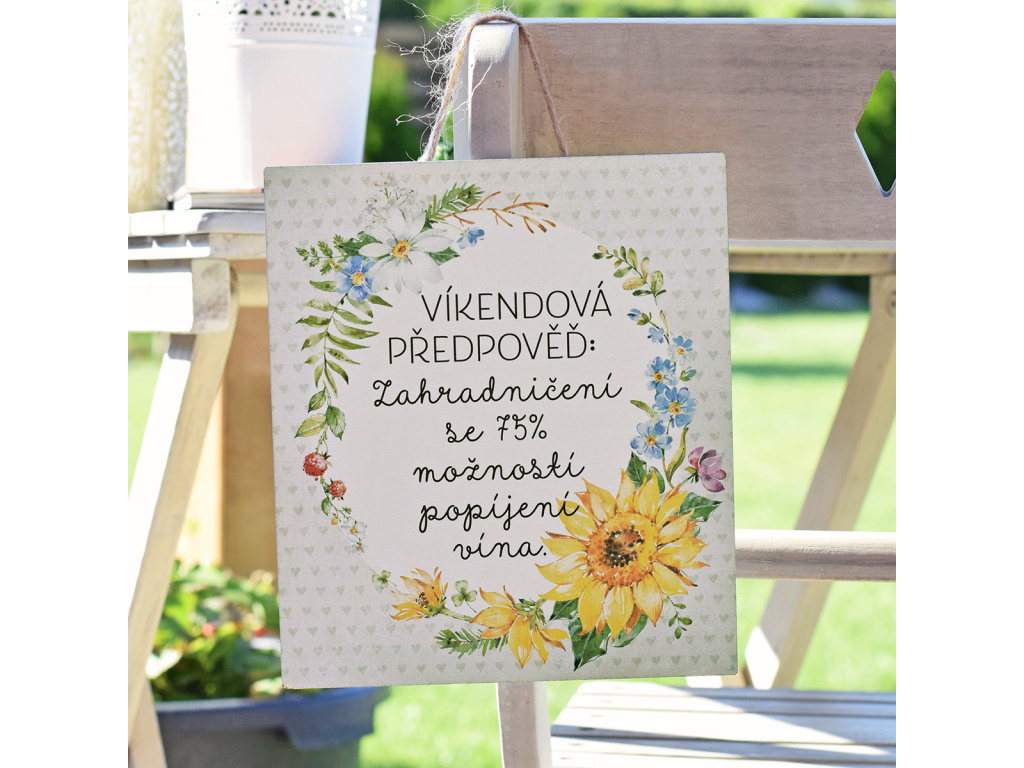 Ručně vyrobená dřevěná závěsná cedulka - "Víkendová předpověď"