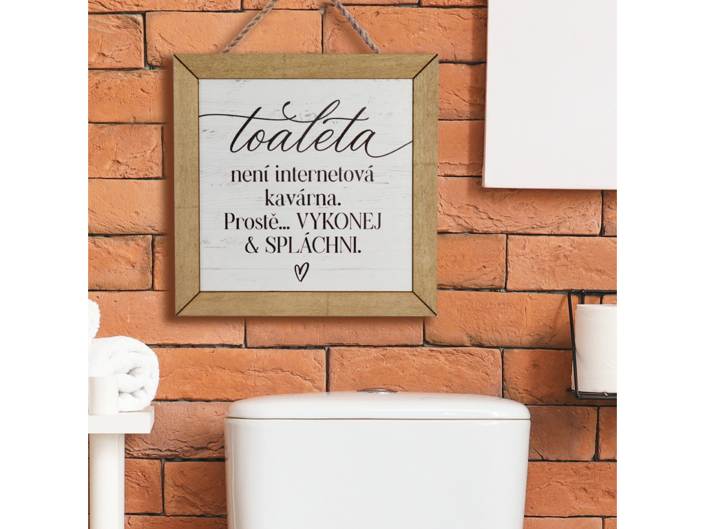 Cedulka s dřevěným rámem - Toaleta není internetová kavárna