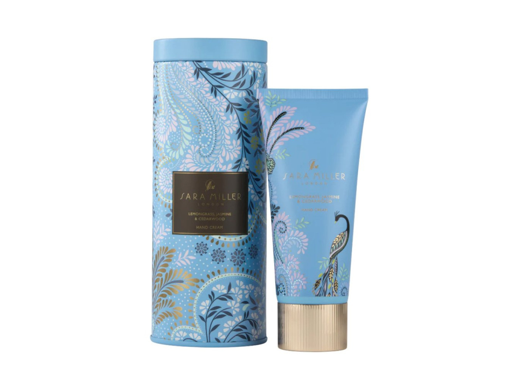 Dopřejte svým rukám péči, kterou si zaslouží! Tento luxusní krém na ruce, ukrytý v nádherné pudrově modré plechové dóze s filigránovým designem, nese smyslnou a povzbuzující vůni. Propojuje svěžest citronové trávy s květinovým jasmínem, hřejivým cedrovým dřevem, kapkou pomeranče a jemnými tóny skořice a jantaru.