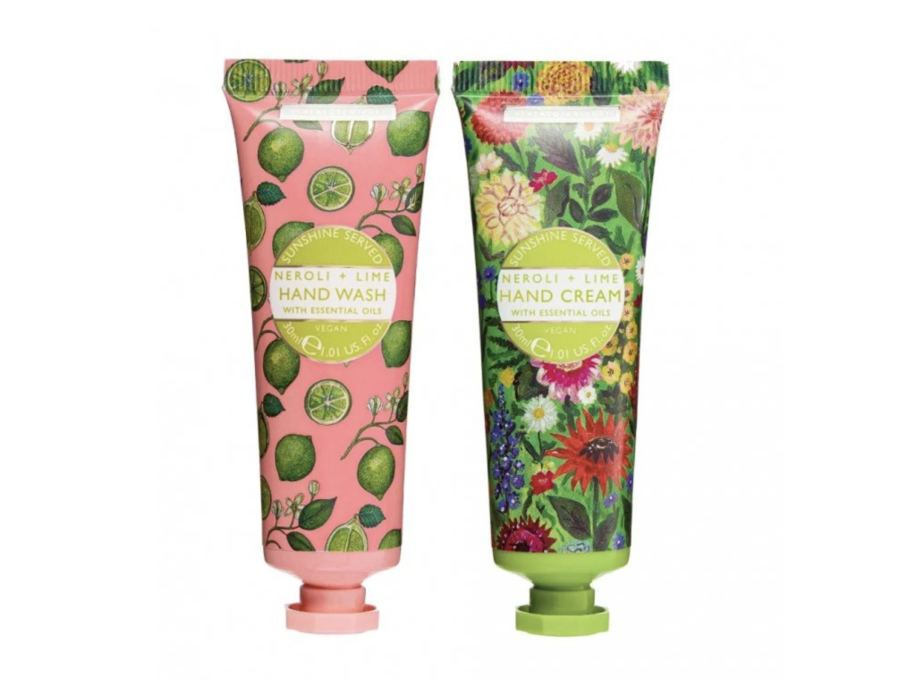 Sada obsahuje mýdlo na ruce a krém na ruce provoněné esenciálními oleji z neroli, citronu a mandarinky, doplněné vůní limetky.