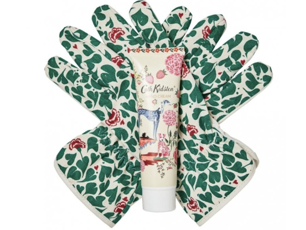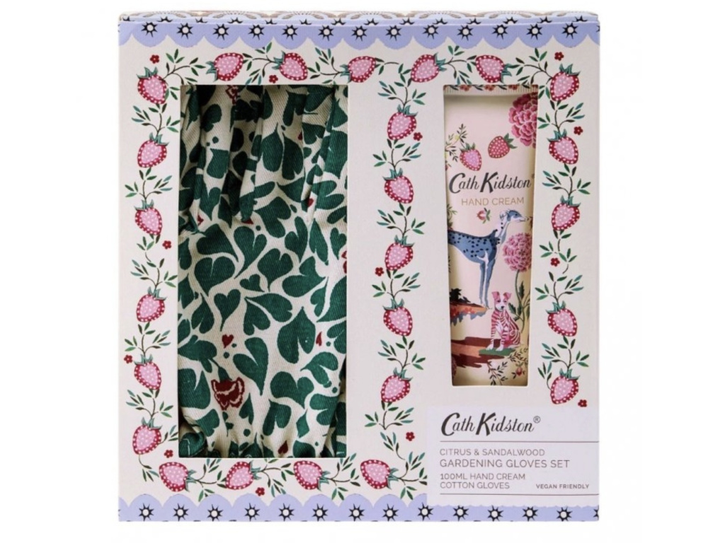 Okouzlující dárková sada se zahradnickými rukavicemi a výživným krémem na ruce s vůní citrusů a santalového dřeva.