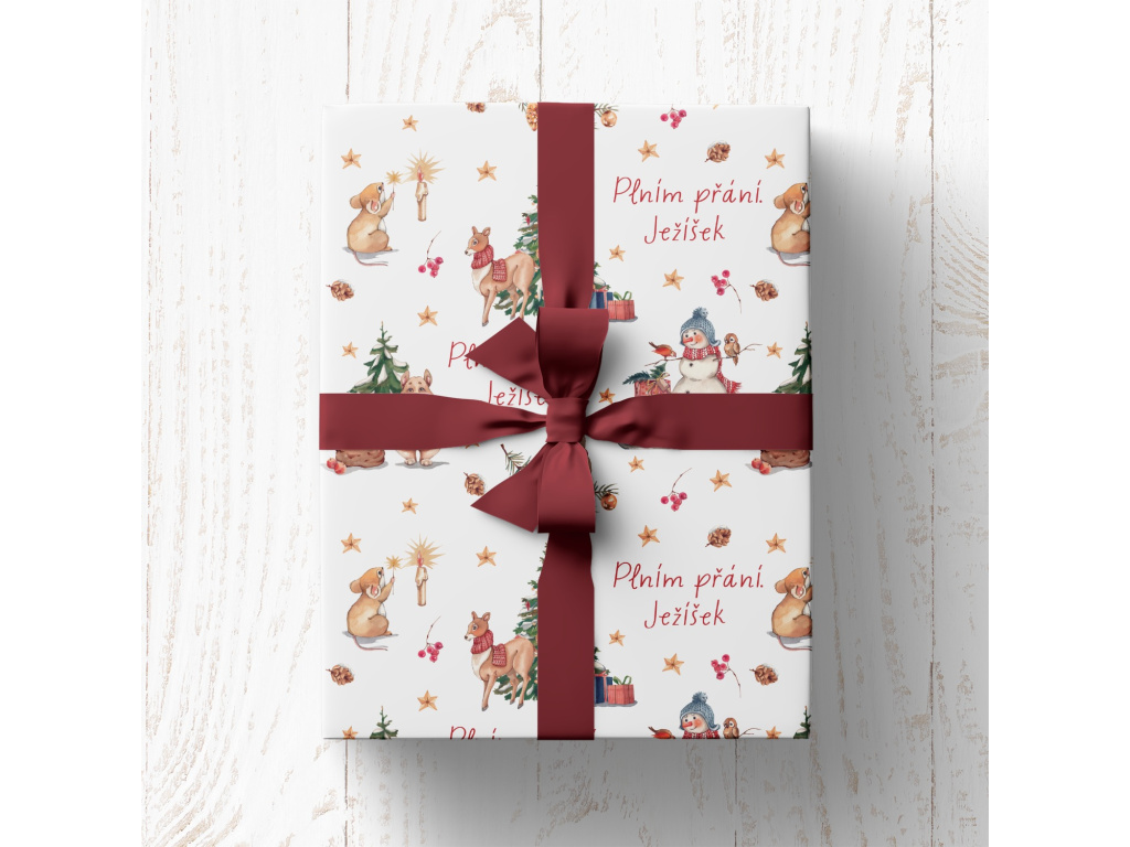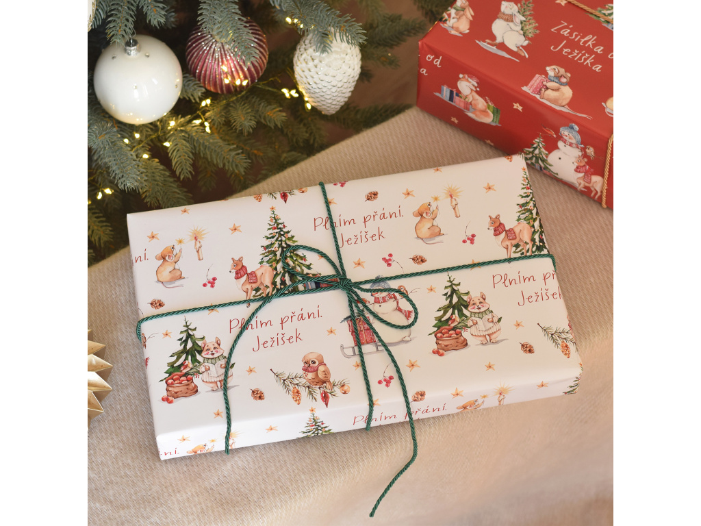Balicí papír Vánoční zvířátka - Plním přání. Ježíšek - Set 3 XXL archu