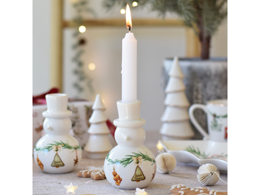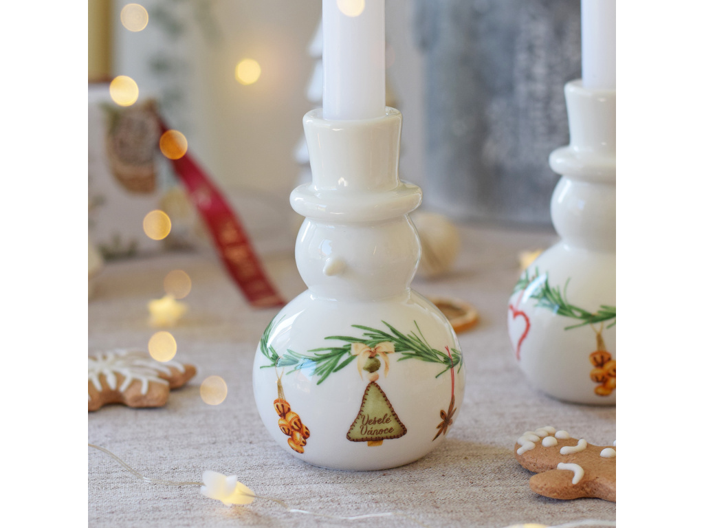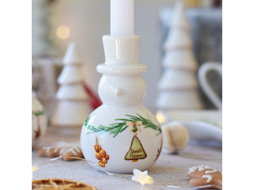 Porcelánový svícen - Sněhulák (kolekce Kouzlo Vánoc)