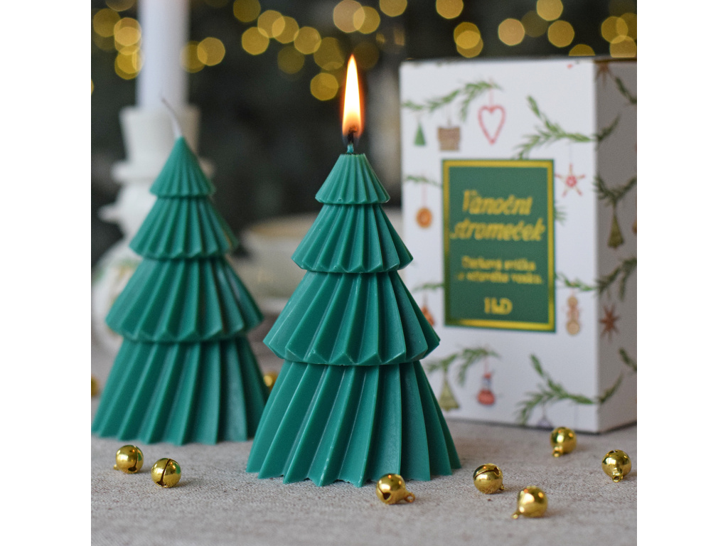 Darujte o vánocích něco výjimečného. Například tuto vonnou svíčku ve tvaru stromečku zabalenou v krásné dárkové krabičce.