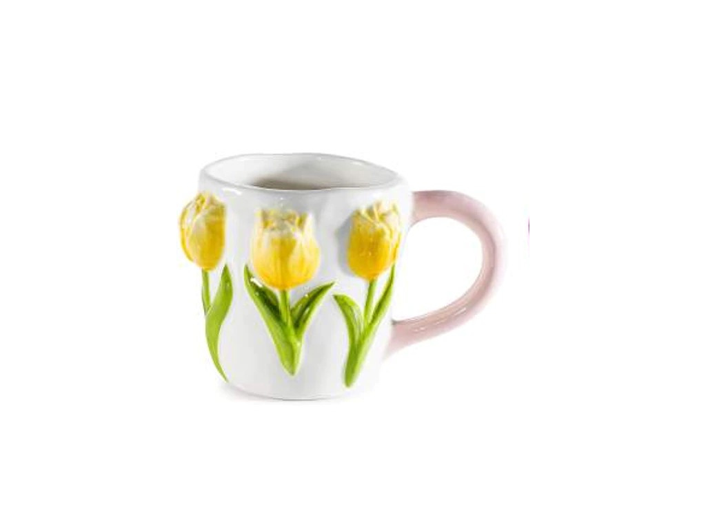 Keramický hrnek s tulipány - žlutý