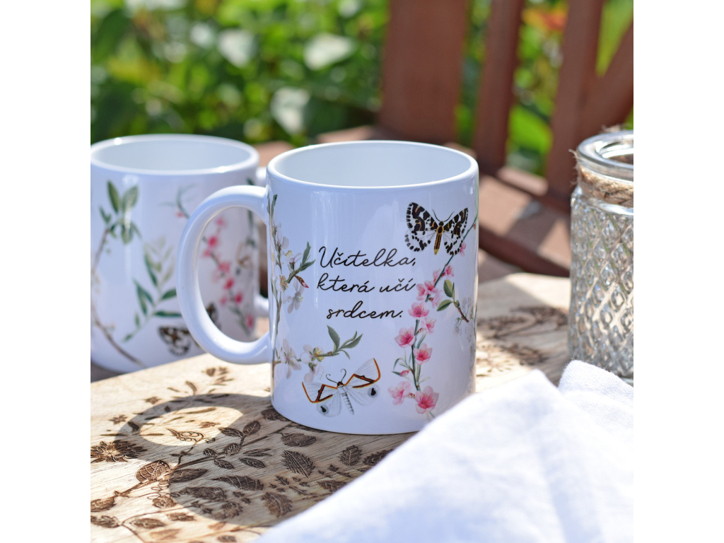 Porcelánový hrnek s potiskem - Květy a motýly pro paní učitelku