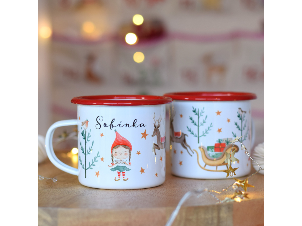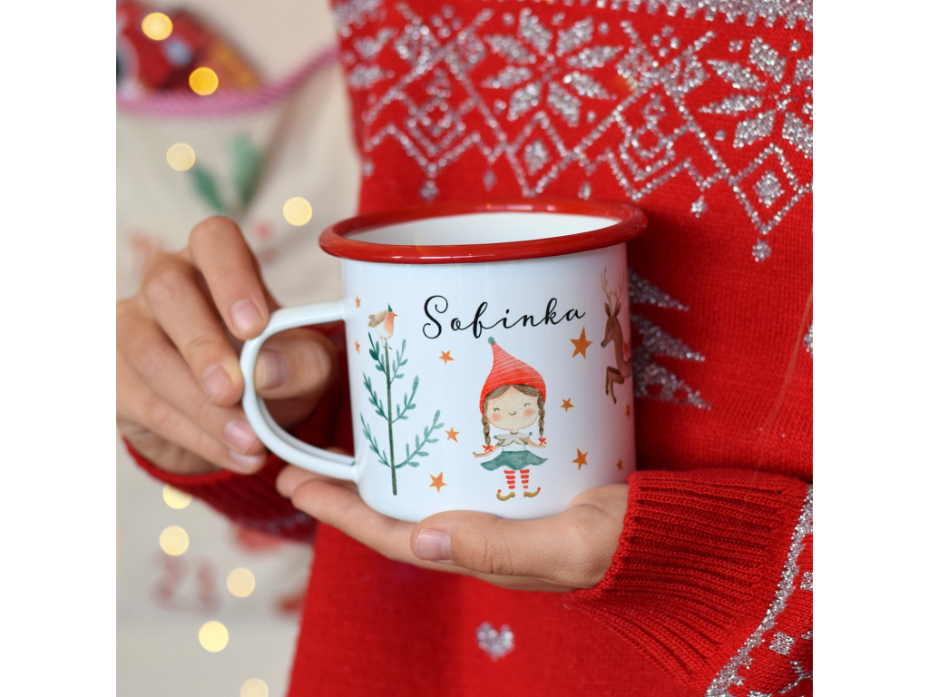 Užijte si s dětmi vánoční čas a pořiďte jim tento kouzelný plecháček s červeným lemem a malovaným skřítkem! Na našem e-shopu naleznete jak variantu skřítka - kluka, tak variantu skřítka pro holky.