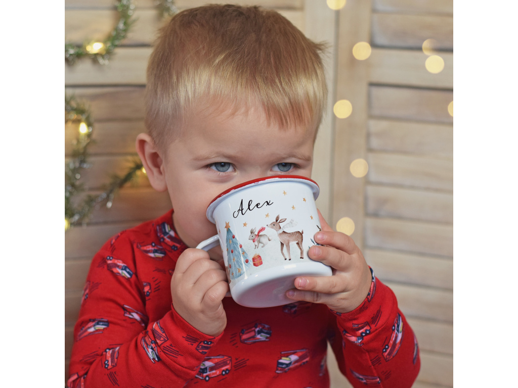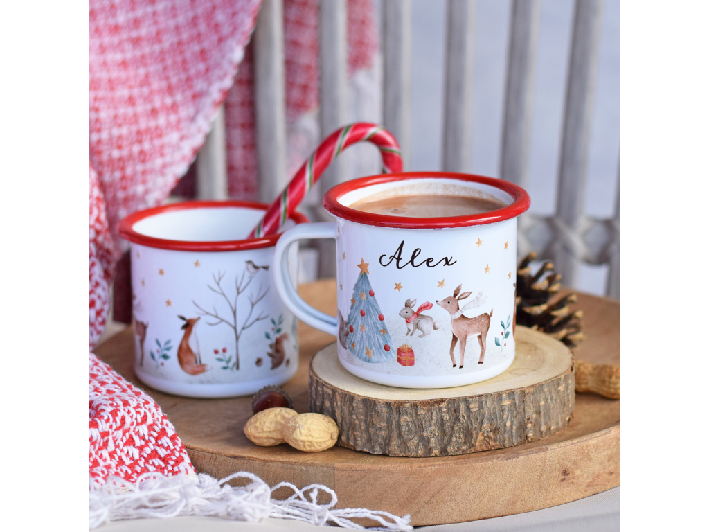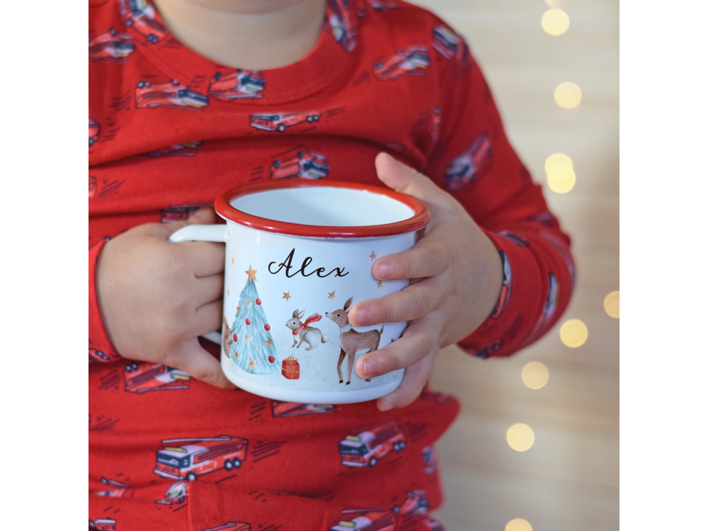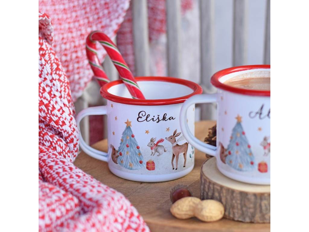 Vánoční plecháček se jménem - Vánoční les   Představujeme Vám roztomilý vánoční plecháček, který je určen dětem, aby jejich radost z Vánoc byla ještě větší. Krásná ilustrace zdobí celý obvod hrníčku, který je navíc dekorován o červený lem.   Východa plechového hrníčku spočívá v jeho nerozbitnosti, což se může u malých dětí docela hodit. :) Hrníček je lehký, přitom pevný a dobře se z něj pije.   objem: 330 ml   Na plecháček Vám rádi zpracujeme jméno dítěte. Stačí jej napsat do poznámky k produktu na míru při vyplnění objednávky.