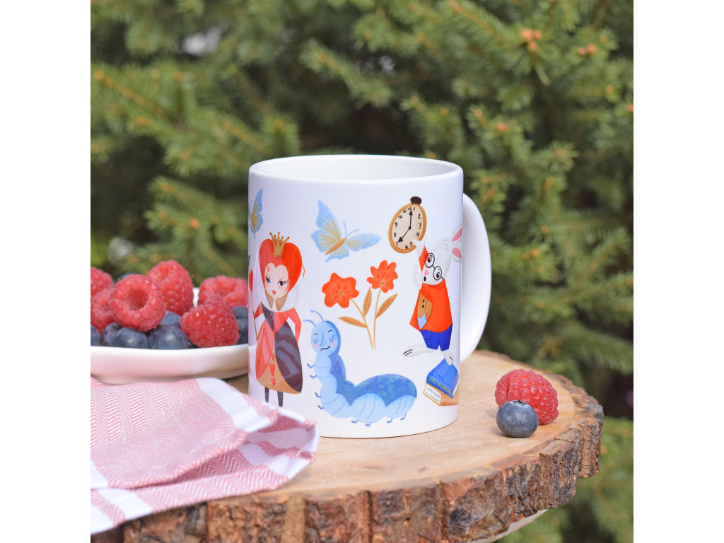 Tento hrneček je zdobený postavičkami z oblíbené pohádky Alenka v říši divů. Nechybí zde postava Alenky a také zde najdete Srdcovou královnu, Kočku Šklíbu a další...
