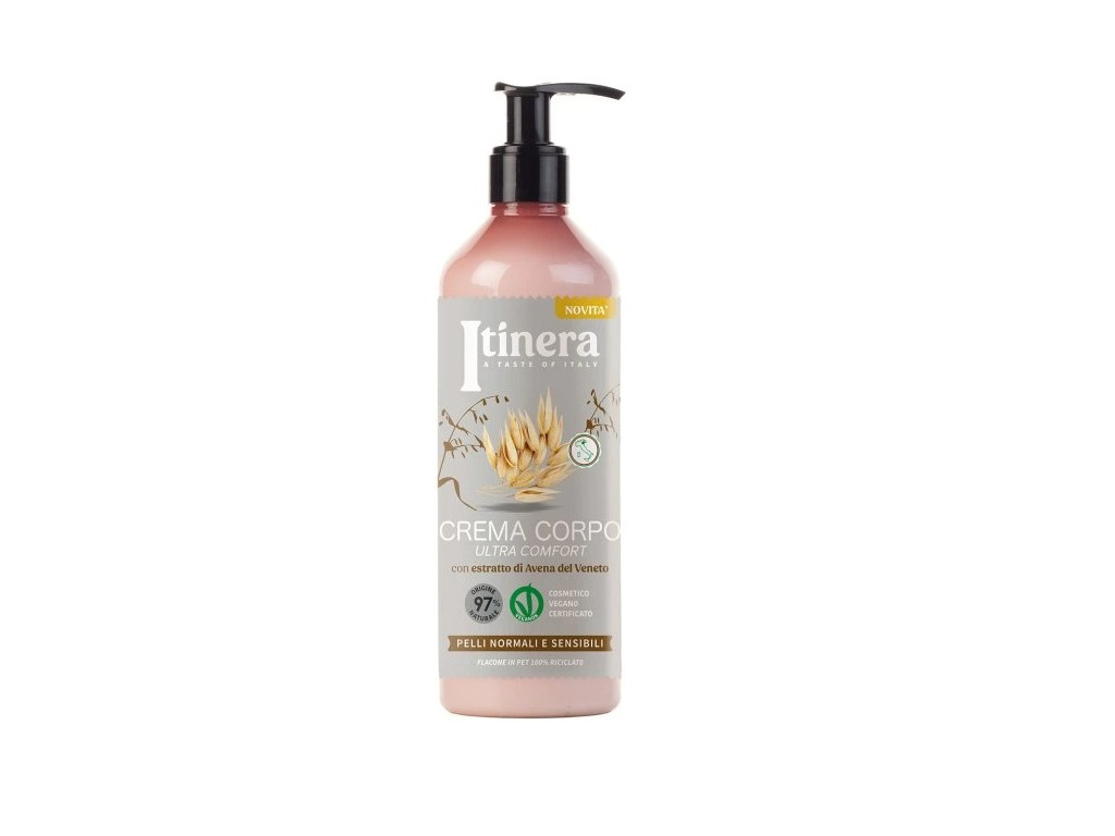 Tělový krém italské značky Itinera přináší intenzivní 24hodinovou hydrataci a zklidnění pokožky díky ovesnému extraktu, známému pro své zvláčňující, regenerační a ochranné účinky. Složení s 97 % přírodních složek je obohaceno o mandlový a slunečnicový olej, glycerin a extrakt z aloe vera, které společně pomáhají udržovat pokožku jemnou, a pružnou. Vitamín E a betaglukany z ovesných otrub poskytují pokožce antioxidační ochranu a podporují její regeneraci. Lehká textura se snadno vstřebává a nezanechává mastný film, zatímco podmanivá vůně mléka, vanilky, mošusu a jasmínu dodává pocit svěžesti a komfortu po celý den.
