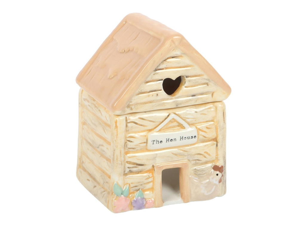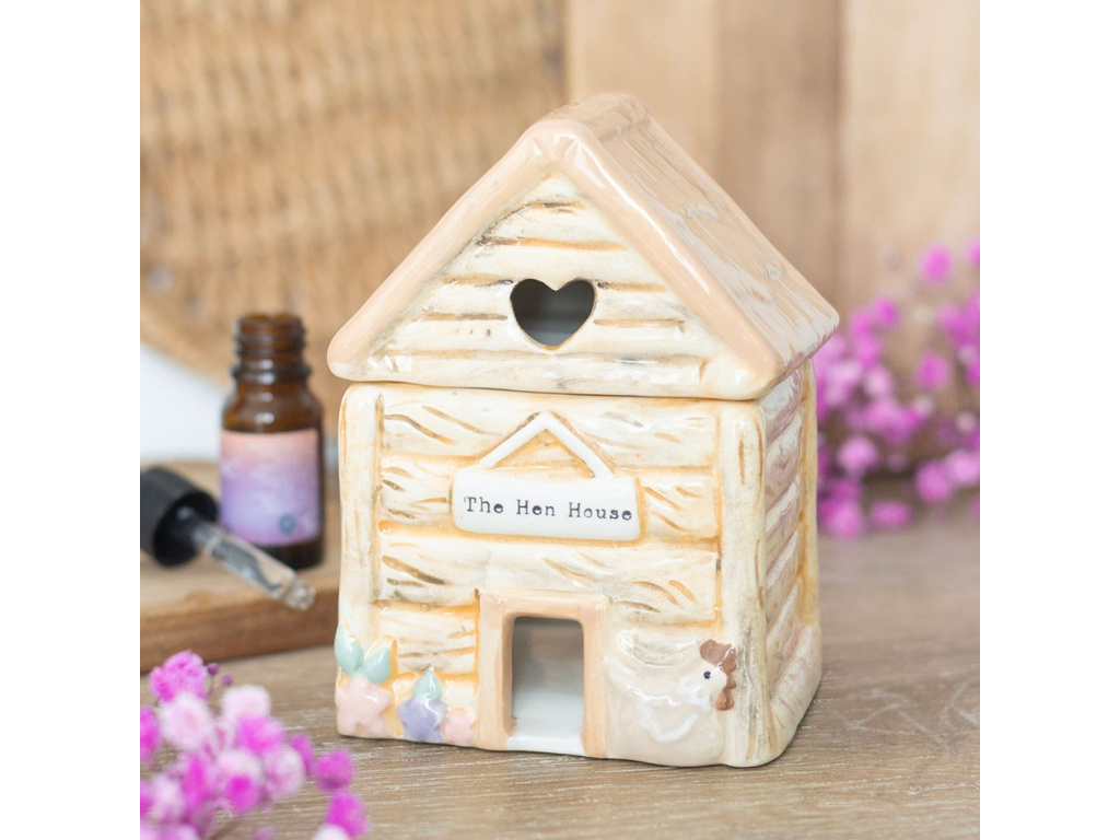 Vůně se setkává s pastelovým farmářským domem v tomto keramickém olejovém hořáku pro kurníky, doplněném o srdcovitý výřez a roztomilý nápis The Hen House. Používejte s ředěným vonným olejem, abyste svůj prostor naplnili sladkými vůněmi. Doporučuje se používat s vonným olejem ředěným vodou. Vždy sundejte víčko při používání. Nikdy nenechávejte zapálenou svíčku bez dozoru.