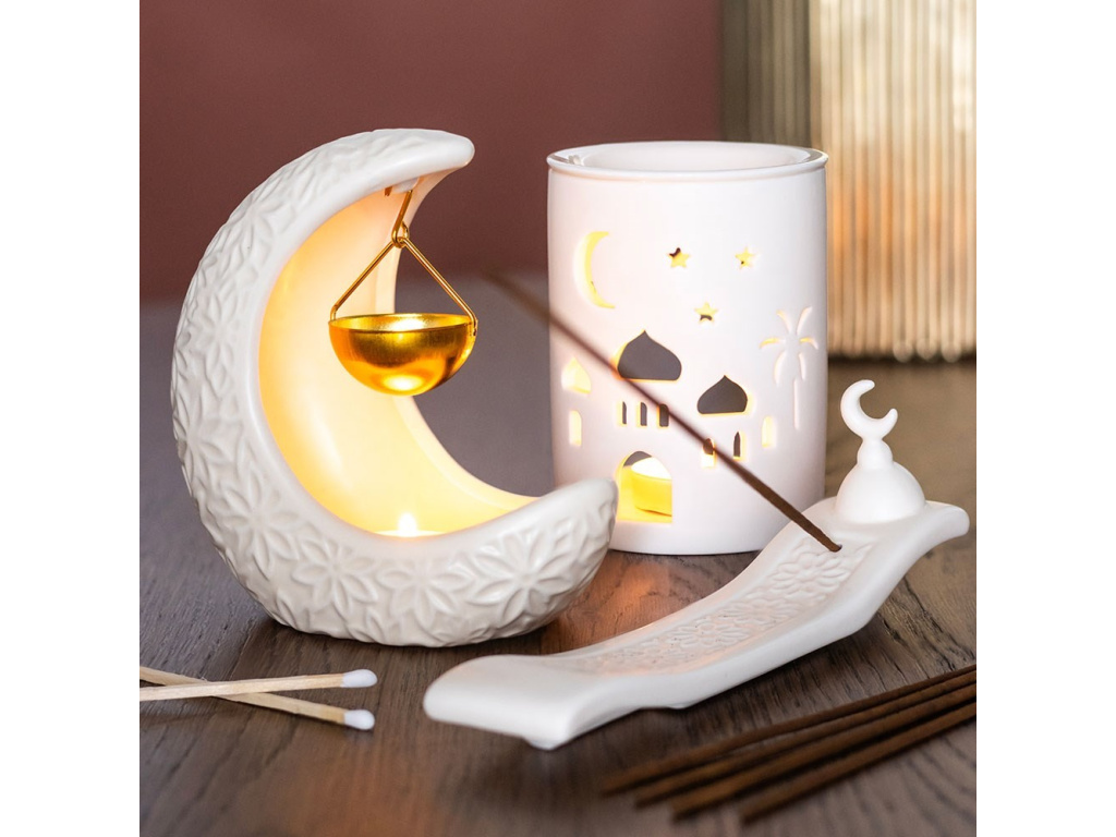 Přineste do svého prostoru teplý, éterický lesk s tímto elegantním keramickým závěsným hořákem ve tvaru půlměsíce. Navržený pro použití s vonným olejem ředěným vodou, tento nápadný kousek je krásným středobodem útulných večerů nebo uklidňujících rituálů. POZOR: miska bude při používání horká. Doporučuje se používat s vonným olejem ředěným vodou. Nechte úplně vychladnout před manipulací.
