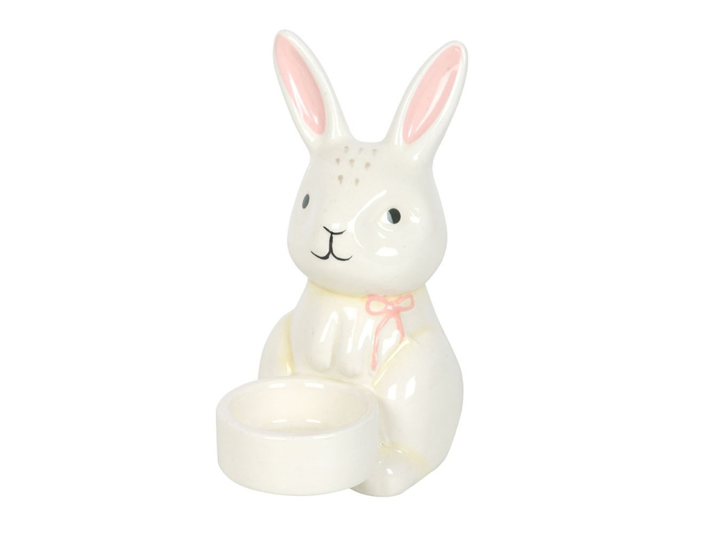 Přineste do domova špetku jara s tímto roztomilým keramickým držákem na čajové svíčky ve tvaru králíčka. Krásný doplněk do jarní výzdoby nebo promyšlený velikonoční dárek.