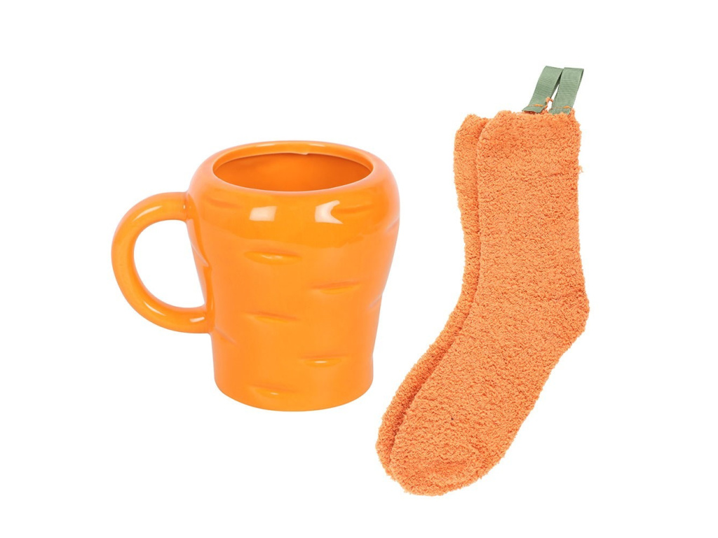 Tato sada hrnku ve tvaru mrkve a nadýchaných ponožek je dokonalým dárkem pro každého nadšeného zahradníka nebo farmáře! Se svou zářivě oranžovou barvou jistě rozjasní den. 400 ml.