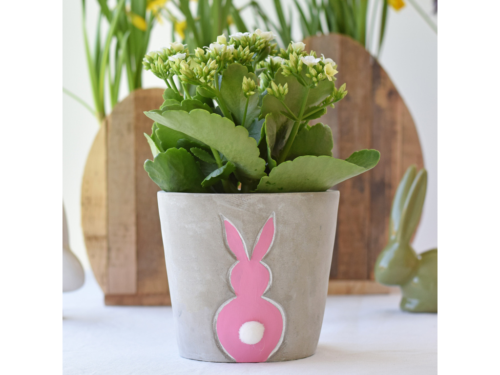 Betonový květináč se zajíčkem, průměr 13,4 cm, výška 12,5 cm