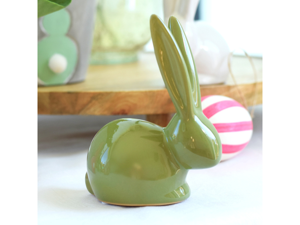 Keramický zajíček Tonja, délka 10 cm, šířka 6,5 cm, výška 13 cm, zelený