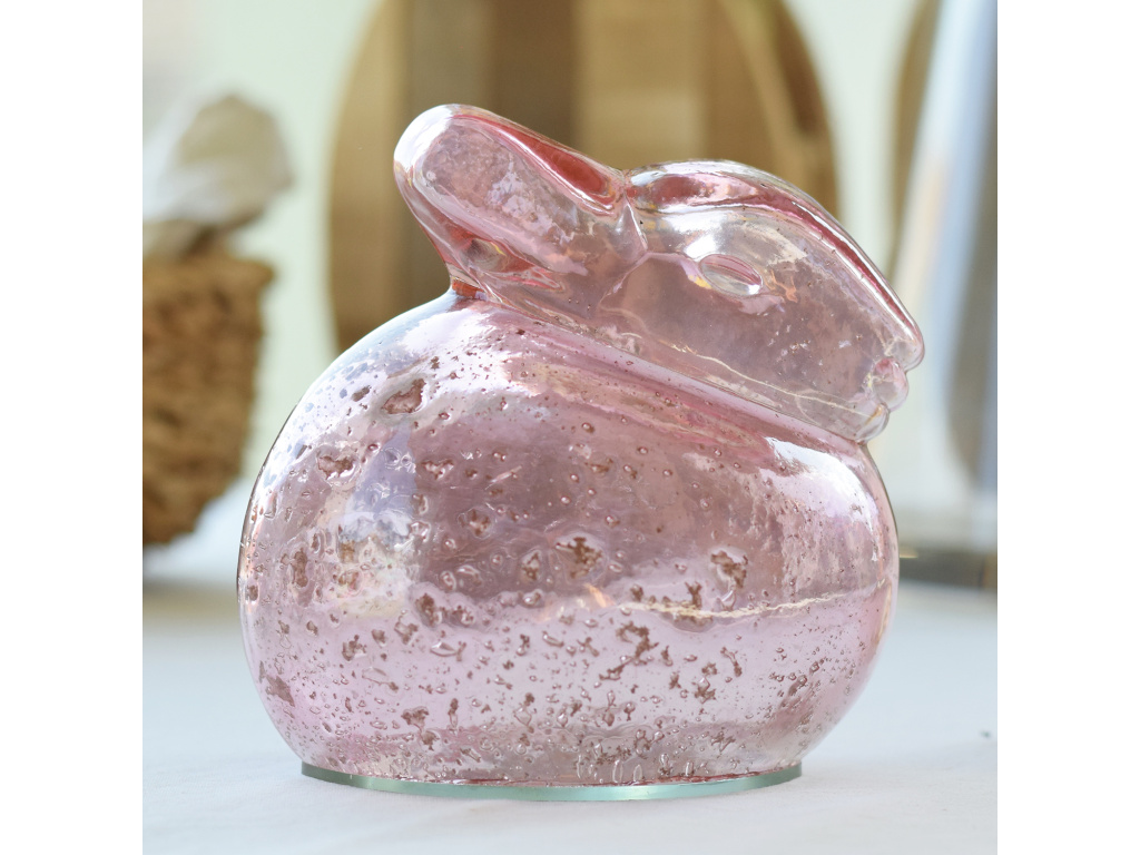 Skleněný zajíc Seelze, délka 13 cm, šířka 9 cm, výška 13 cm, růžový