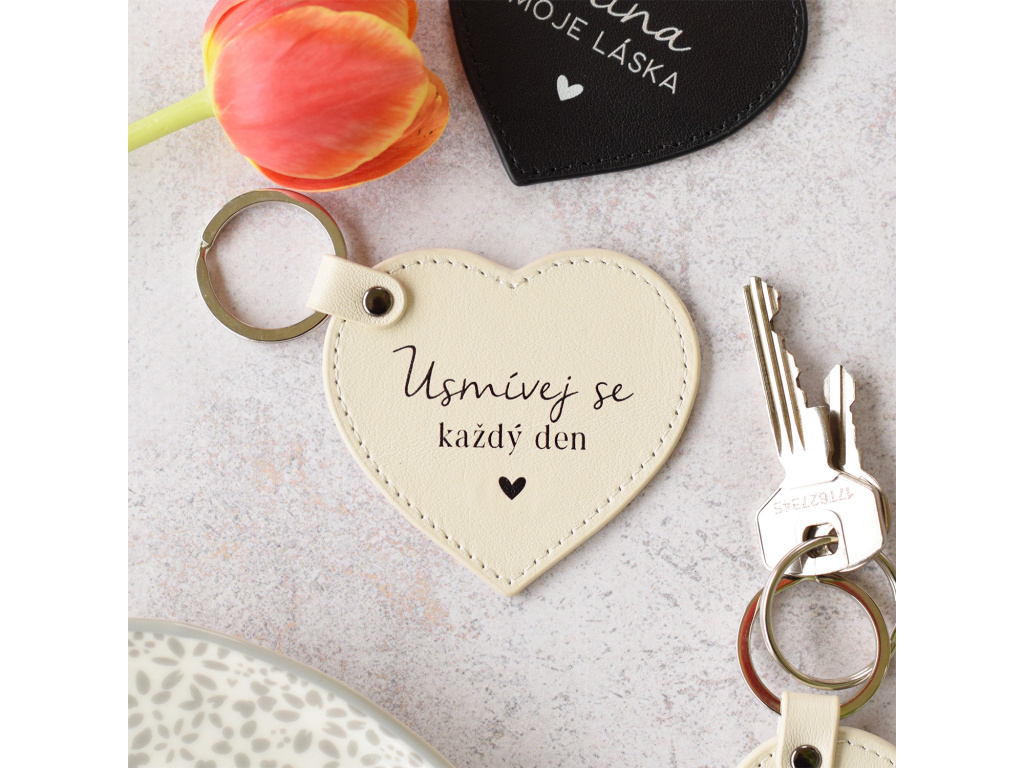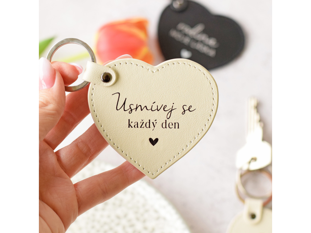 Kožená klíčenka Srdce - Usmívej se každý den.