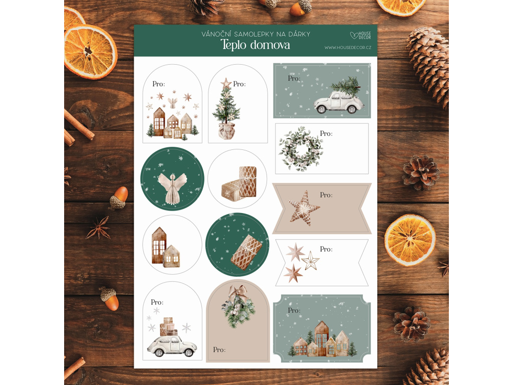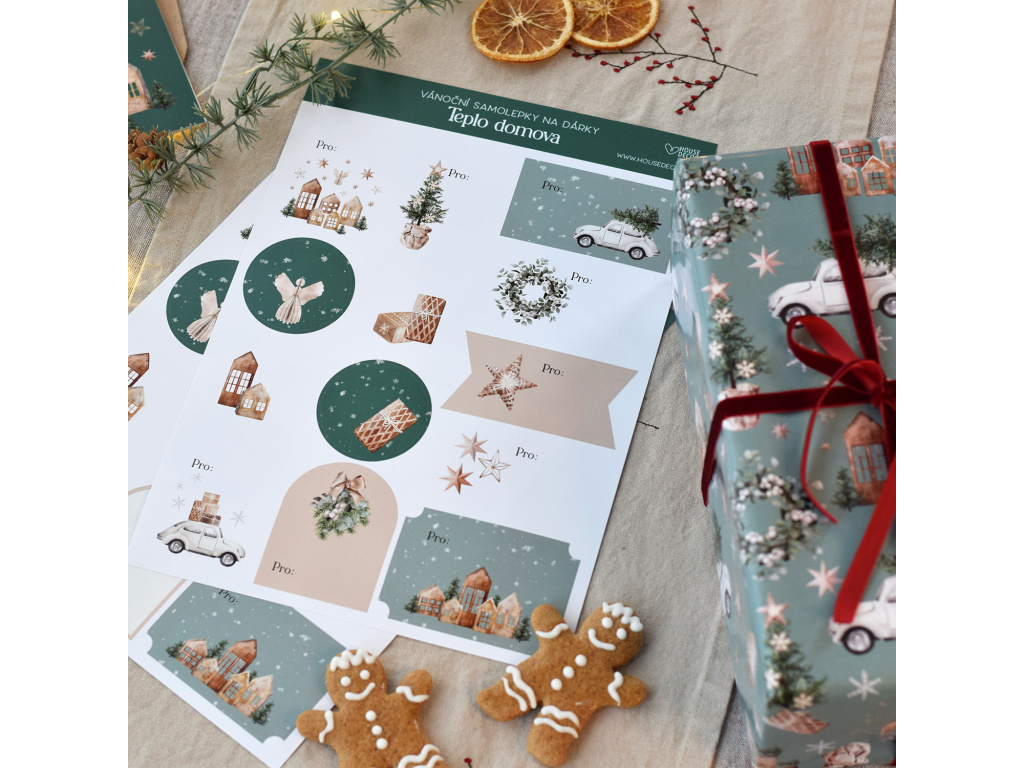 Vánoční samolepky na dárky - kolekce Teplo domova