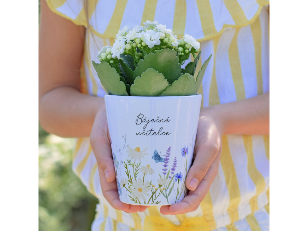 Květináček Motýlí louka - Báječné učitelce Květináček z kolekce s jemnými barvami květin a motýlků, které jsou po celém obvodu květináčku je perfektním dárkem pro paní učitelku. Naše květináčky už udělali radost mnoho zákazníkům. Jedná se o oblíbený a milý dárek, který nikdy nezklame.   Ještě vybrat voňavou květinu a dokonalý dárek máte na světě :) velikost: 10 x 9 cm MOHLO BY VÁS ZAJÍMAT : ➤ Dárky pro učitelky/učitele ➤ Květináčky ➤ Dekorační zápichy ➤ Květiny