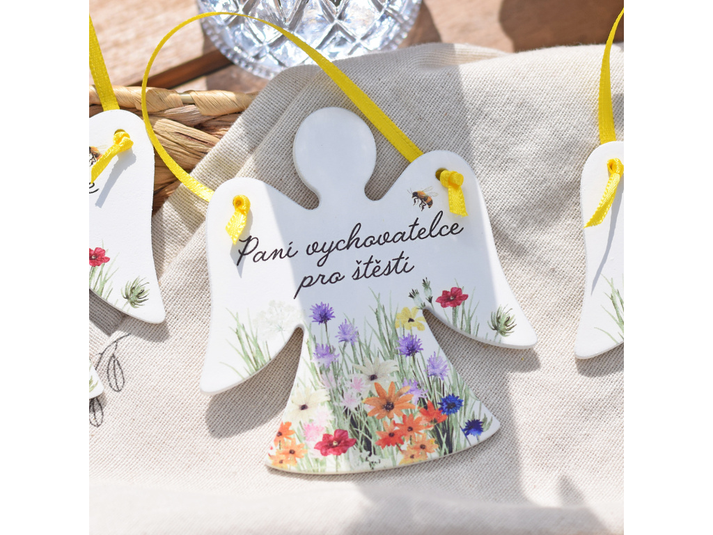 Tento dřevěný dárkový andílek potěší celý učitelský sbor. Na výběr je hned několik variant, abyste mohli vykouzlit úsměv nejen paní učitelce, ale také dalším pracovníkům školy a poděkovat tak za jejich oddanou práci ve školním roce.