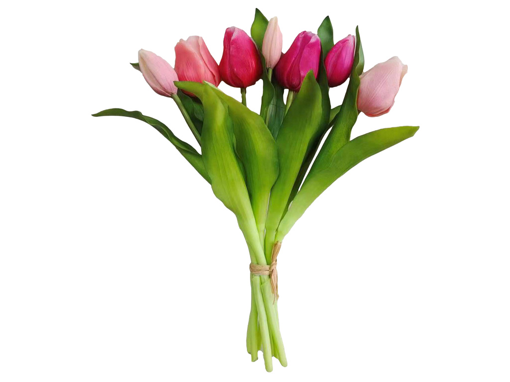 Tulipán svazek 30 cm x 7 cm 4 květiny 3 pupeny růžové. Dekorativní květina vhodná do vázy i aranžmá. Ideální pro jarní i celoroční výzdobu interiéru. (rozměr 30cm, 7cm, barva růžové).