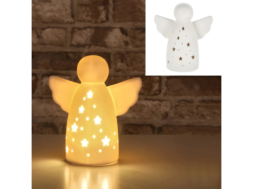 Porcelán, přední výřez ve tvaru hvězdy, 1 teplá bílá LED, vypínač, včetně 3 knoflíkových baterií LR 44