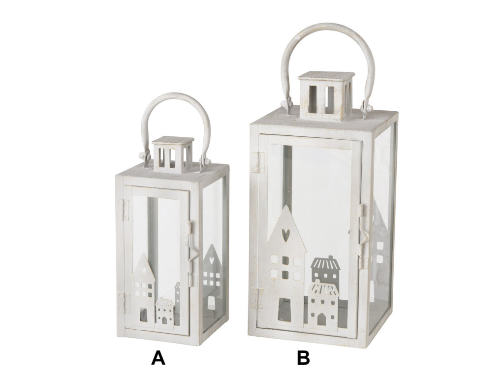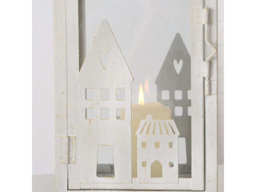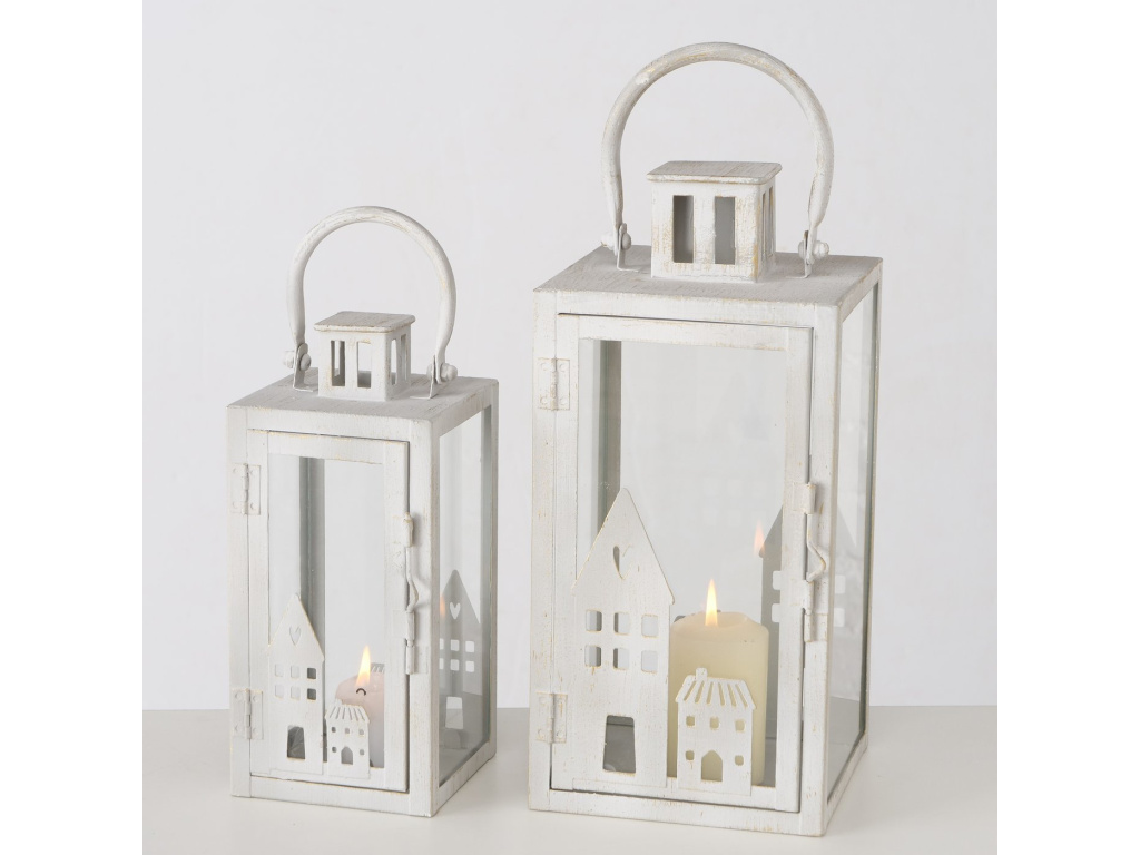 Bílá lucerna s domečky - 2 velikosti