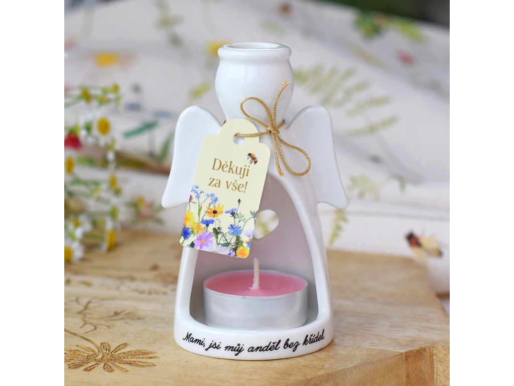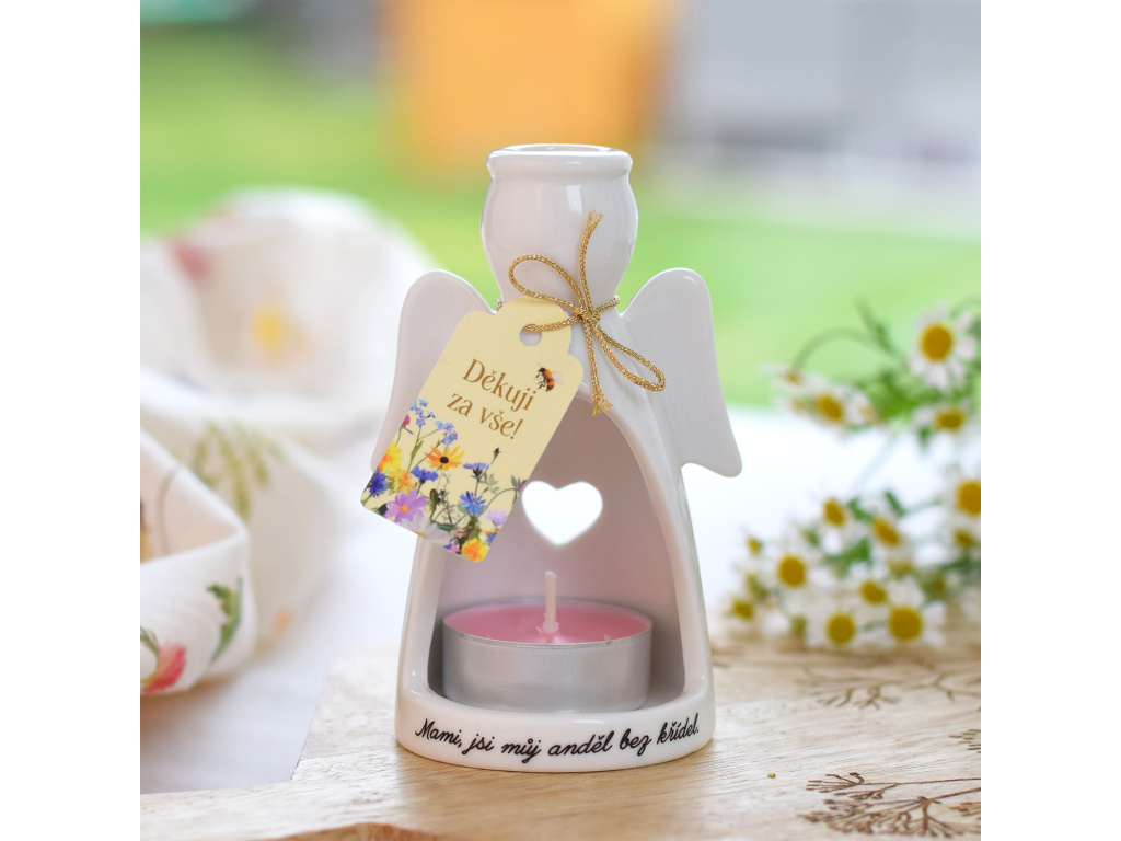 Porcelánový anděl na svíčku - Mami, jsi můj anděl bez křídel.