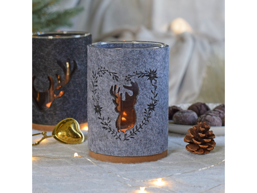 Skleněněný svícen - Jelen se srdcem