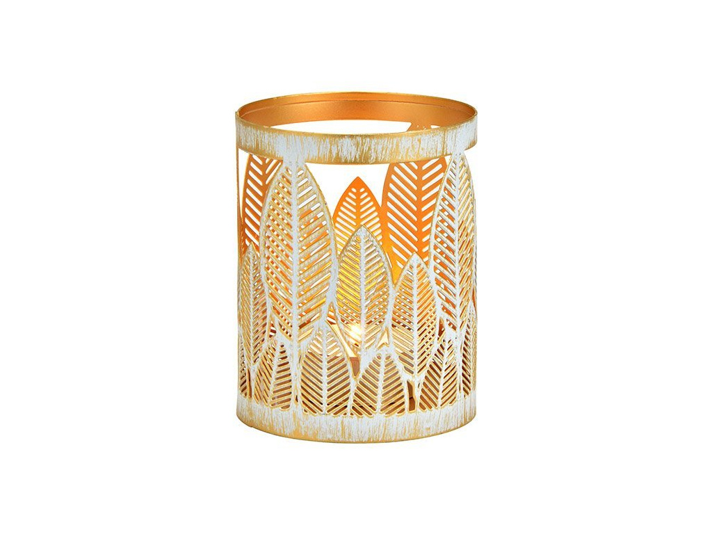 Svícen s motivem listů - zlatý - 10x13x10cm