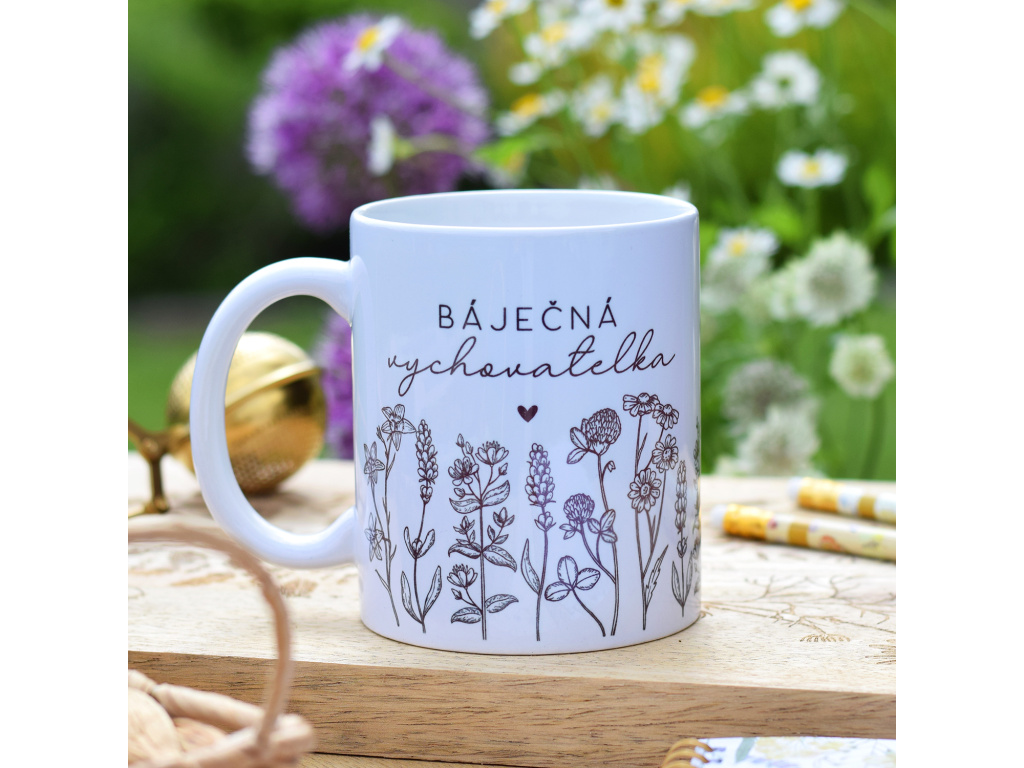 Tento elegantní keramický hrneček s jemným motivem černobílých květů je malým, ale milým poděkováním pro paní vychovatelku, která každý den pomáhá s trpělivostí, laskavostí a úsměvem.