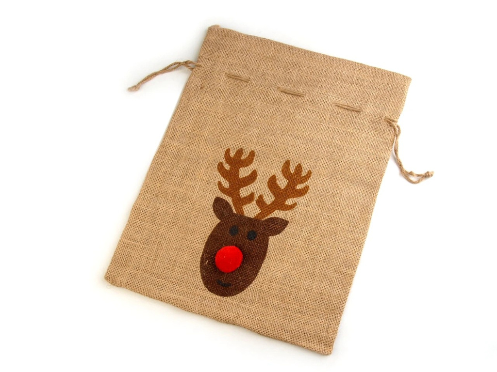 Jutový pytlík se sobem nadchne nejen děti, ale i dospělé. Pytlík zaujme především malbou a bambulkou místo nosu. Stahuje se pomocí jutového provázku. Můžete jej použít na dárky nebo naplnit dobrotami na Mikuláše.