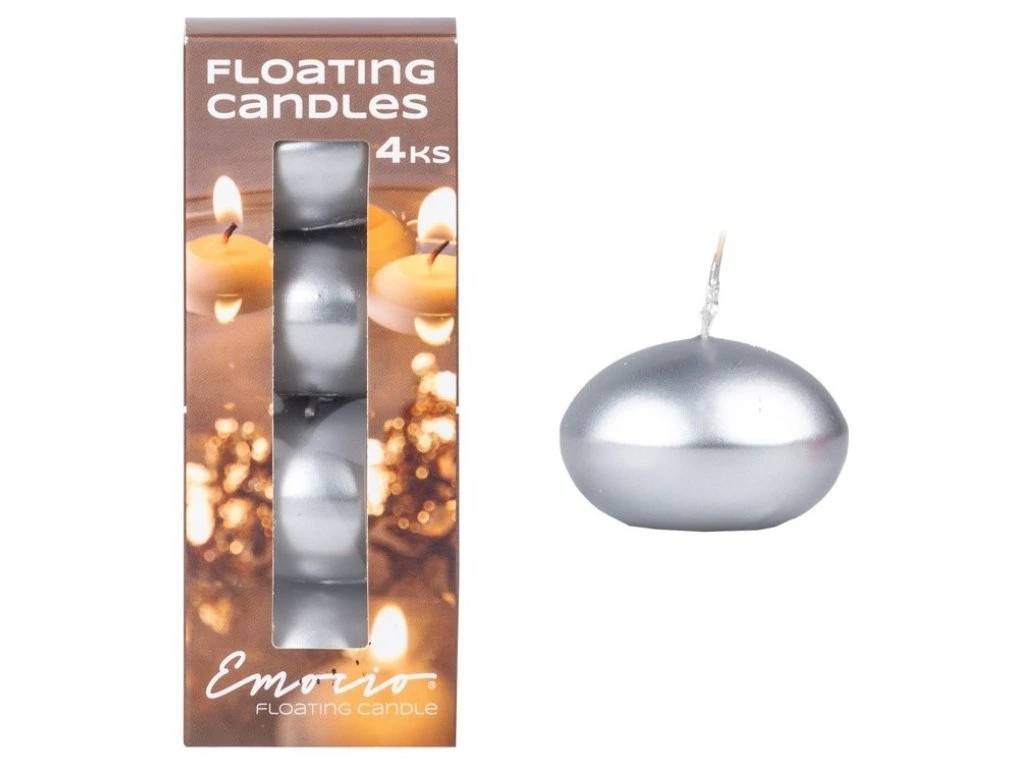 Emocio plovoucí svíčky 4ks Metal stříbrná